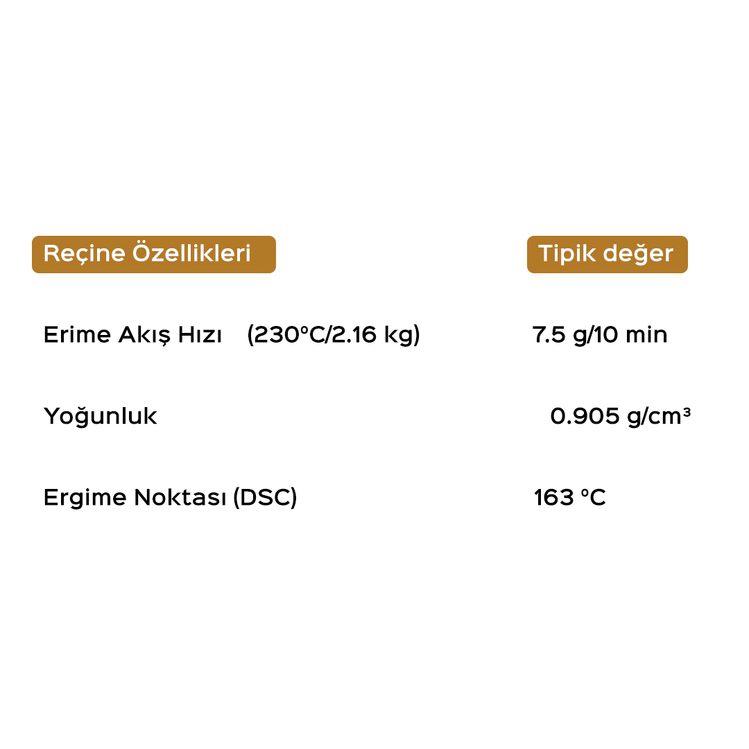 AÇIKLAMA ; Orta moleküler ağırlık dağılımına sahip homopolimer yapıda polipropilen ile üretilen ürünlerden geri dönüşüm tesislerinde geri kazanılarak üretilmiş orta akışkanlığa sahip olan ve genel amaçlı enjeksiyon ile kalıplamada kullanılabilecek bir üründür.